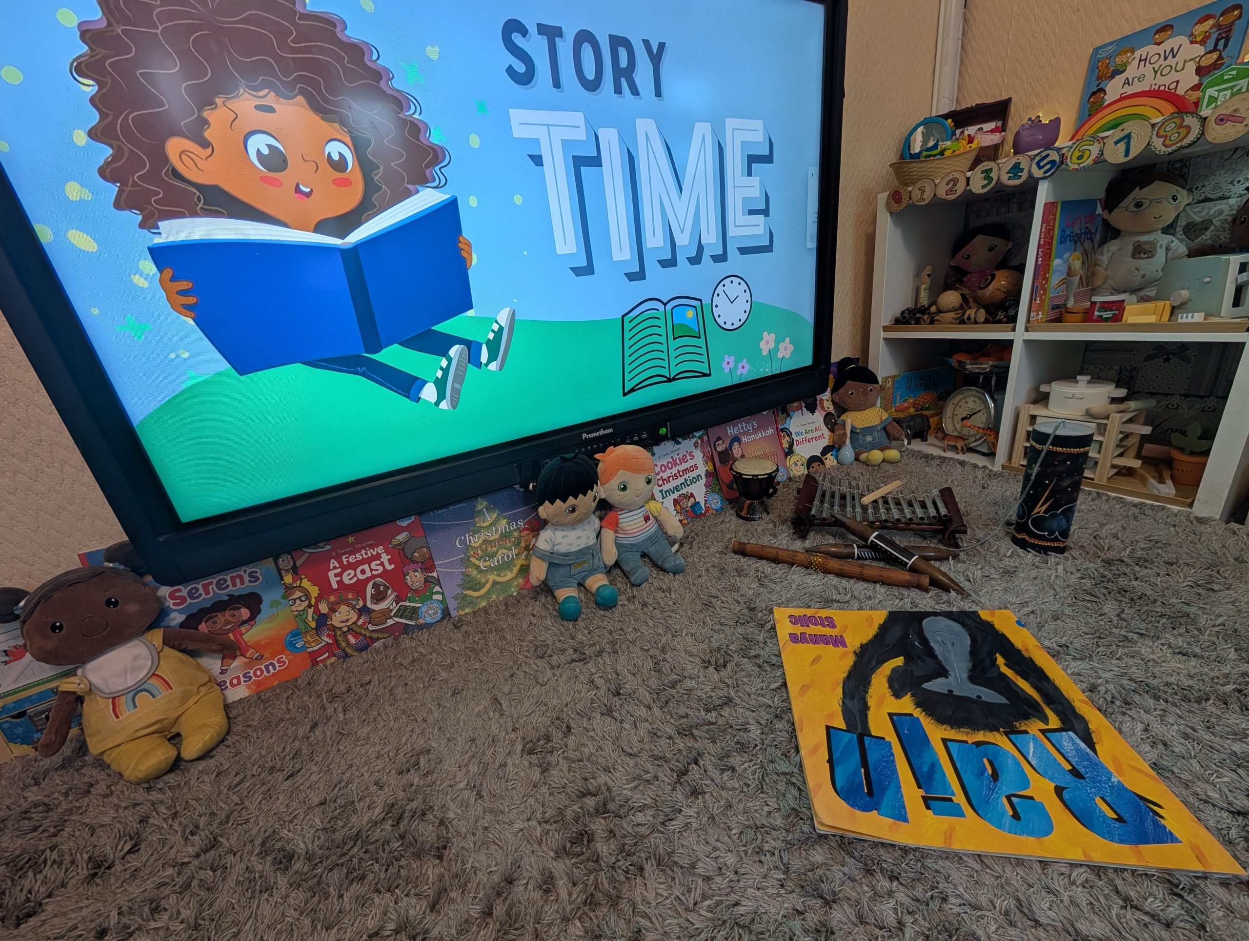 For younger children, the repetition, sound patterns and animal focus supported early communication and engagement, providing a secure foundation for shared attention and meaning-making. For older children, the story prompted thoughtful discussion about change and contrast, as the animals experience dry ground before the rain arrives. This opened up conversations about how places can feel different from where we live, how environments change, and how living things respond to those changes, supporting children to think beyond their own immediate experiences in an age-appropriate way.
